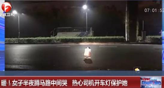 深夜,一个姑娘蹲在马路中间哭得很伤心