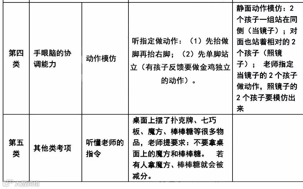 进去面试之前,先玩几个游戏,跳高,单脚站,立正,踏步,之后就考12以内的加减法,再讲一个故事或者唱一首歌
