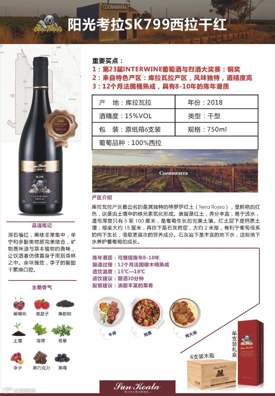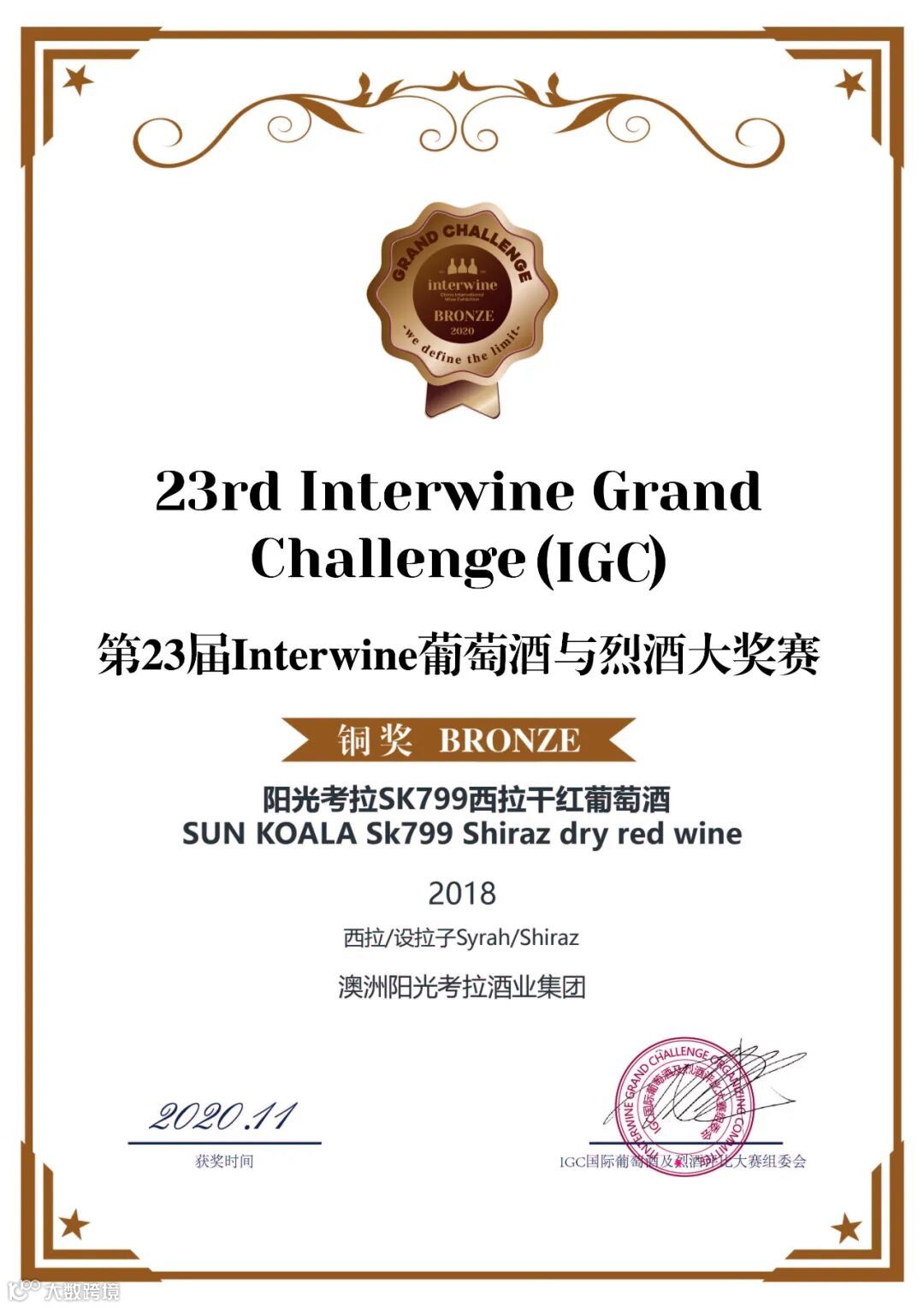 我们选送了一款SK799作为代表,去参加了此次盛会。SK799来自著名的库拉瓦拉产区,特殊的土壤,让这款酒的风味更具有的代表性。当然不负众望,在7000多瓶参赛酒中脱颖而出,夺得铜牌!