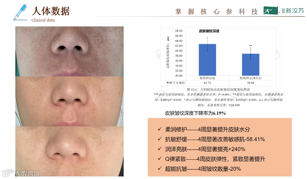 表皮抗衰:促进DSC1等蛋白表达,促进表皮紧密连接,形成强大皮肤屏障。