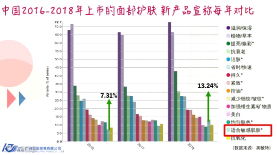 (2016年-2018年上市的面部护肤新产品宣称每年对比)
