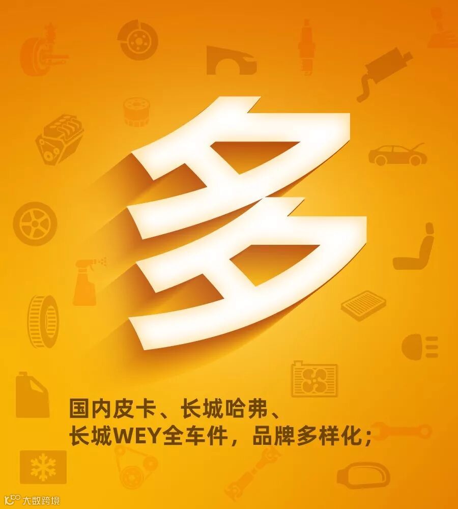 多:国内皮卡、长城哈弗、长城WEY全车件,品牌多样化;