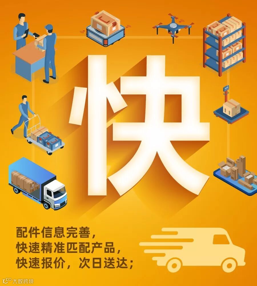 快:配件信息完善,快速精准匹配产品,快速报价,次日送达;