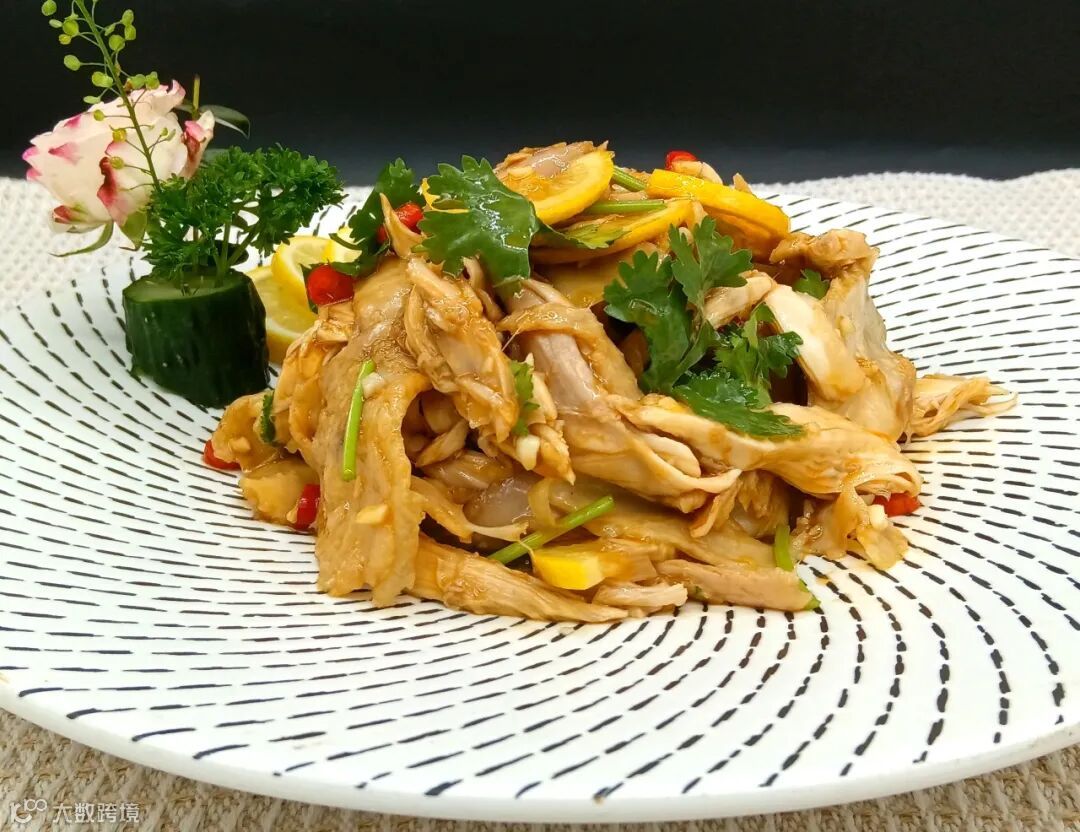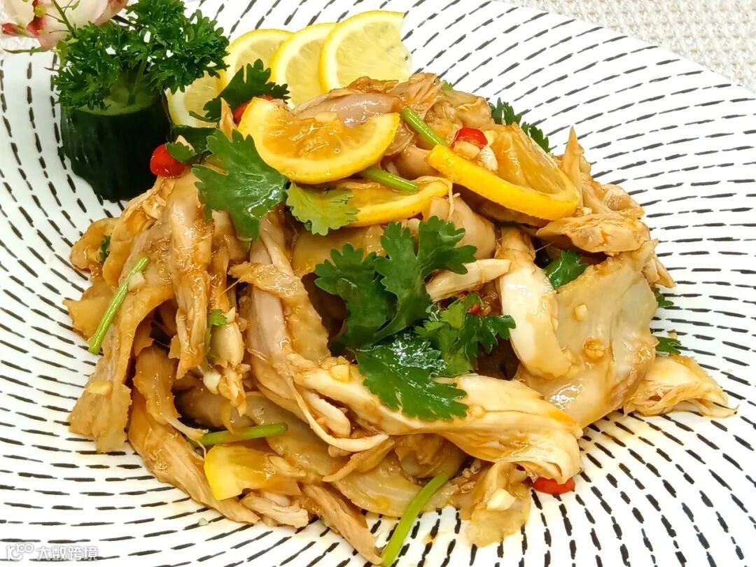 柠檬捞汁手撕鸡结合了传统手撕鸡的鲜嫩口感与柠檬的清新酸爽,同时融入捞汁的复合风味,成为夏日备受推崇的凉菜。