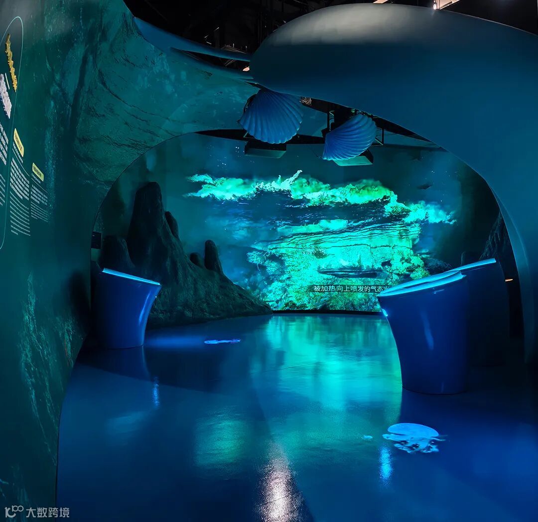 “探秘海洋”展馆打造了“海洋起源”“海洋世界”“海洋探索”“海洋保护”四大主题展区,构建起多维立体的深海认知场域,让观众充分领略海洋的浩瀚与神秘,探寻大海对万物生灵以及人类文明的深远意义,并深入认识我国在海洋强国建设方面取得的成就,提升公众对海洋保护的意识与责任感。