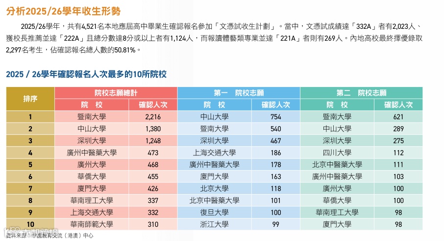 最终,内地高校共择优录取2,297人,占确认报名总人数的50.81%。