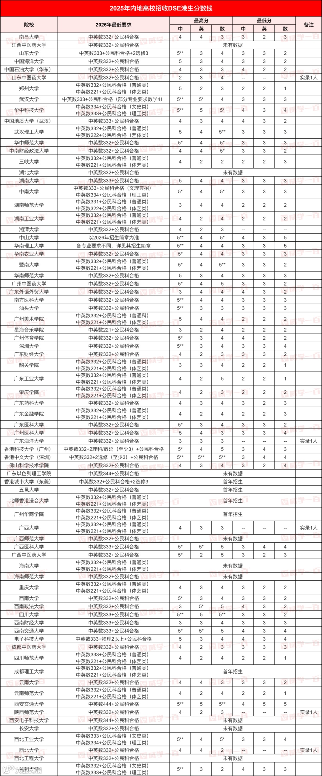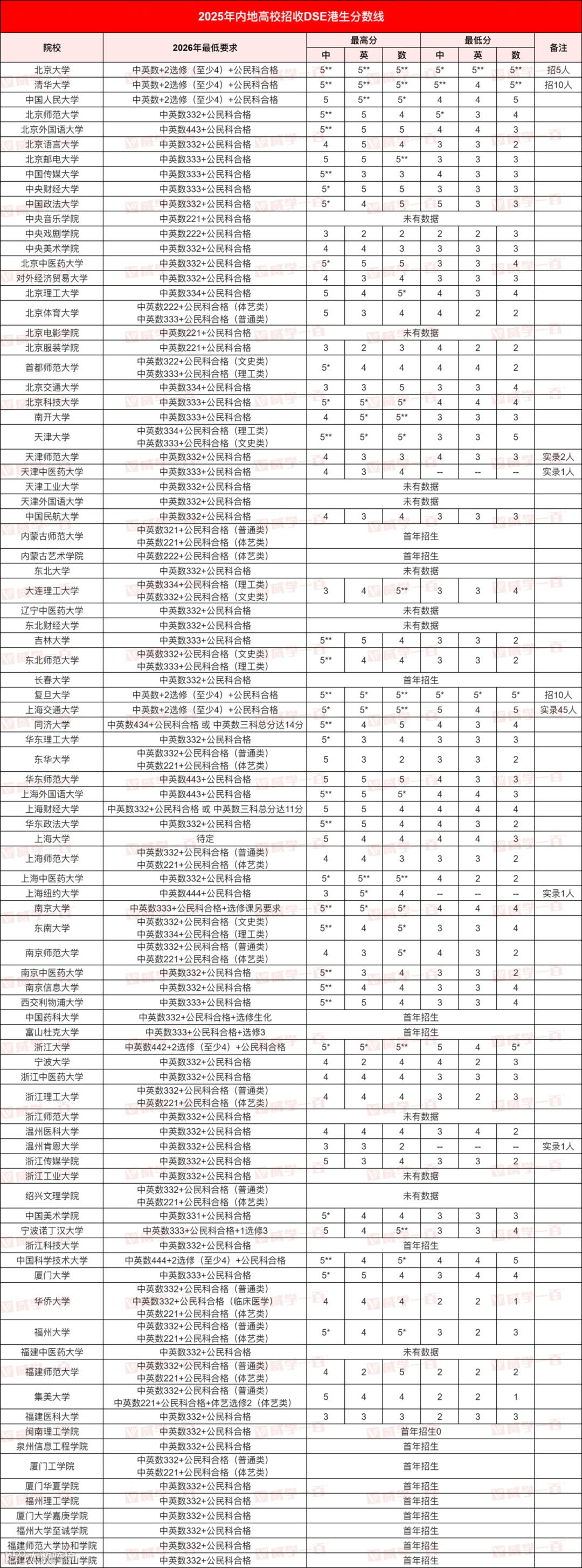 近日,《2026/27 学年内地高校招收香港中学文凭考试学生计划指南》正式发布!该指南详细公布了2025/26学年的招生录取情况以及内地大学各专业的DSE分数线。对于26年参加DSE大考,并有意报名内地高校的学生来说具有极大的参考价值。