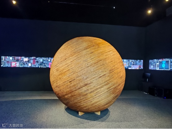 空间采用围合形的方式,在展会中营造沉浸式的艺术体验感受。空间中放置的原型艺术装置概念源自太一一词原指宇宙天体中心,配合四周的条形多媒体意指以太一希望为文化的新质生产力提高源源不断的能量,走好中国博物馆强国的道路,装置上采用年轮雕刻的图案,寓意着新生、变化与发展。这既是原点,也是起点。