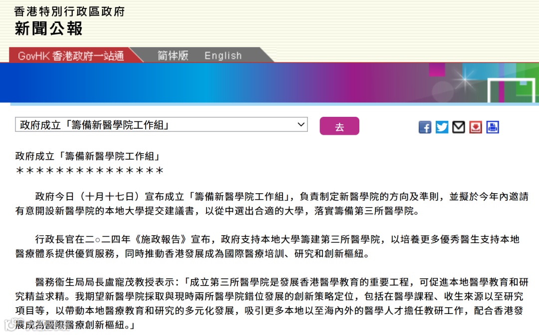 早在2024年《施政报告》中,特区行政长官李家超就明确提出“支持本地大学筹建第三所医学院”,旨在优化香港医疗人才培养体系、应对老龄化社会医疗需求。消息发布后,香港浸会大学、香港科技大学、香港理工大学纷纷递交申办申请,引发广泛关注。