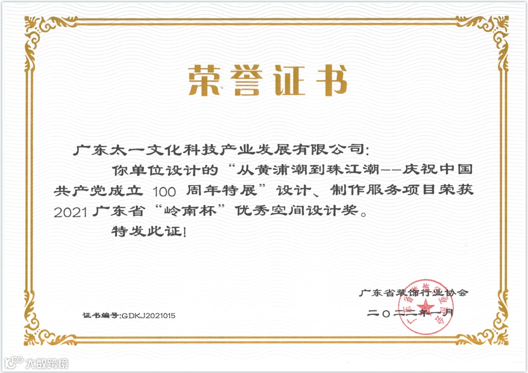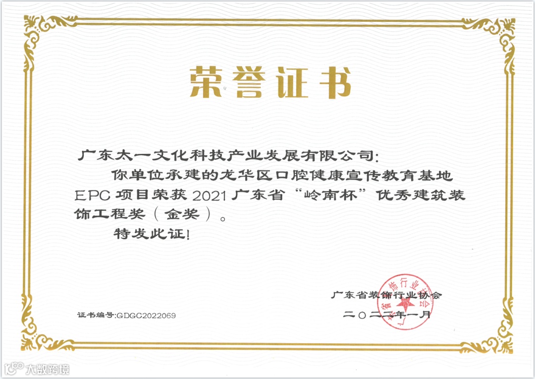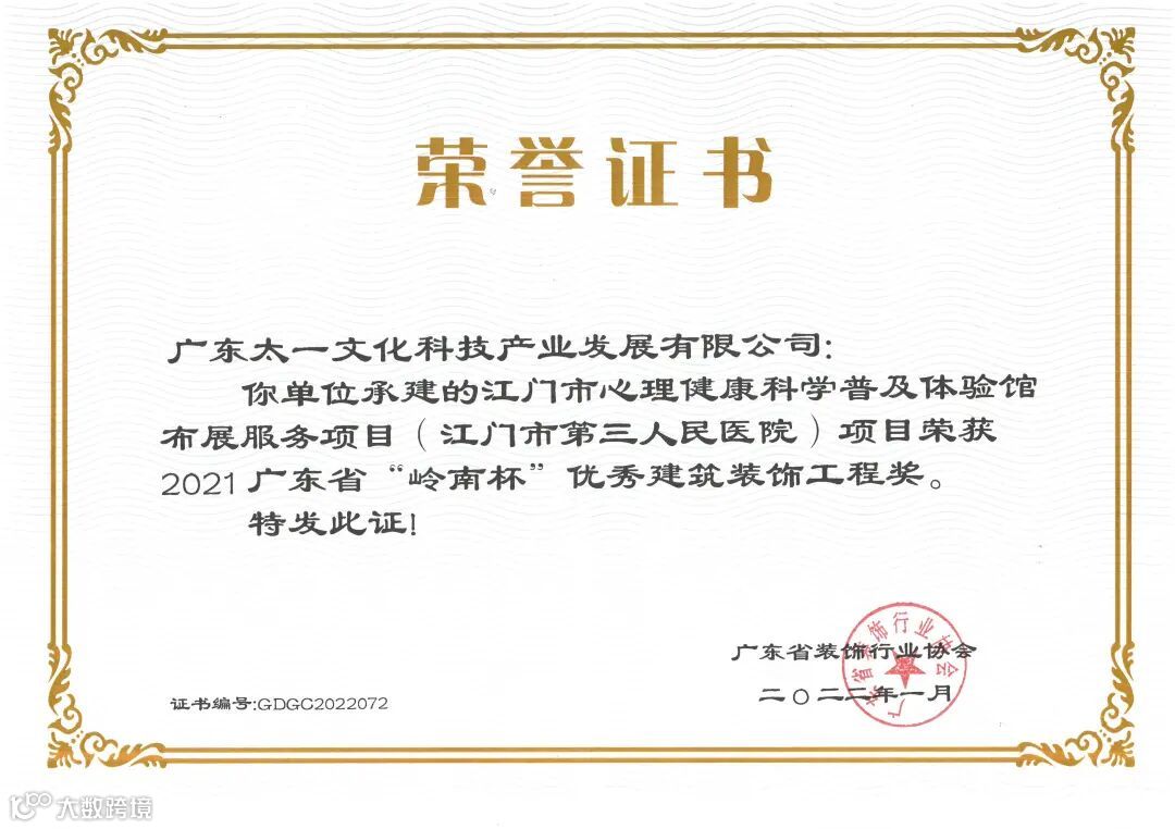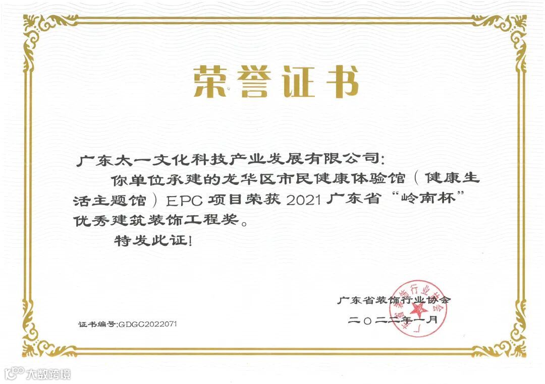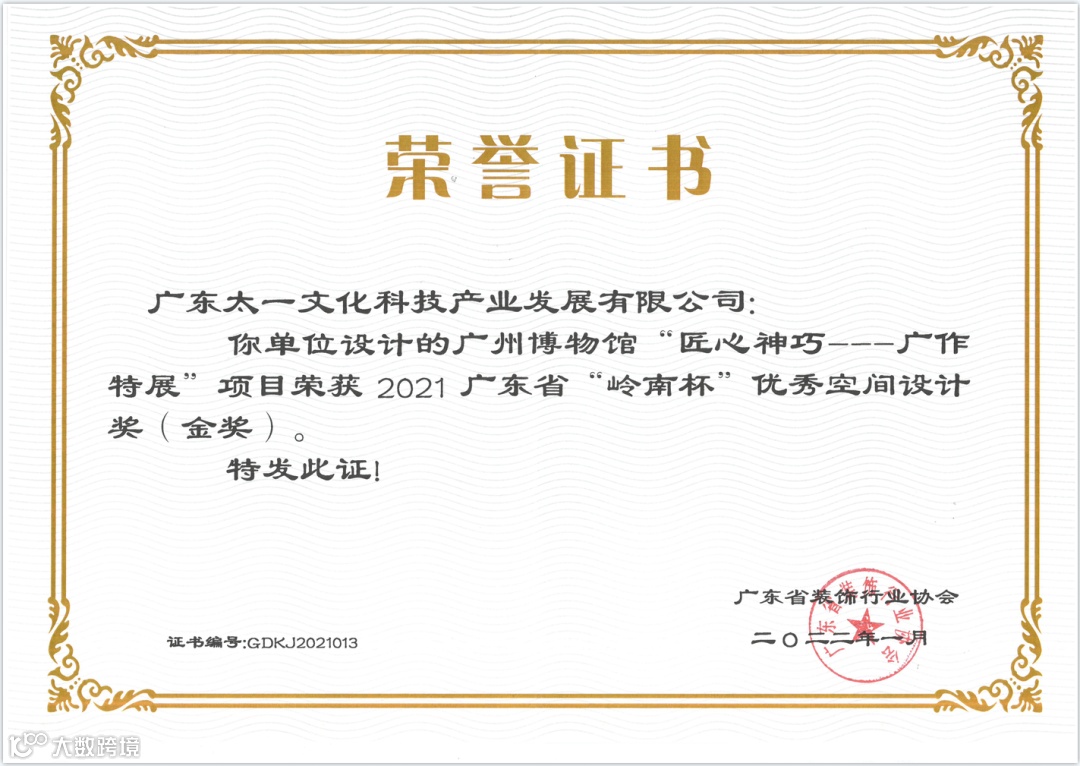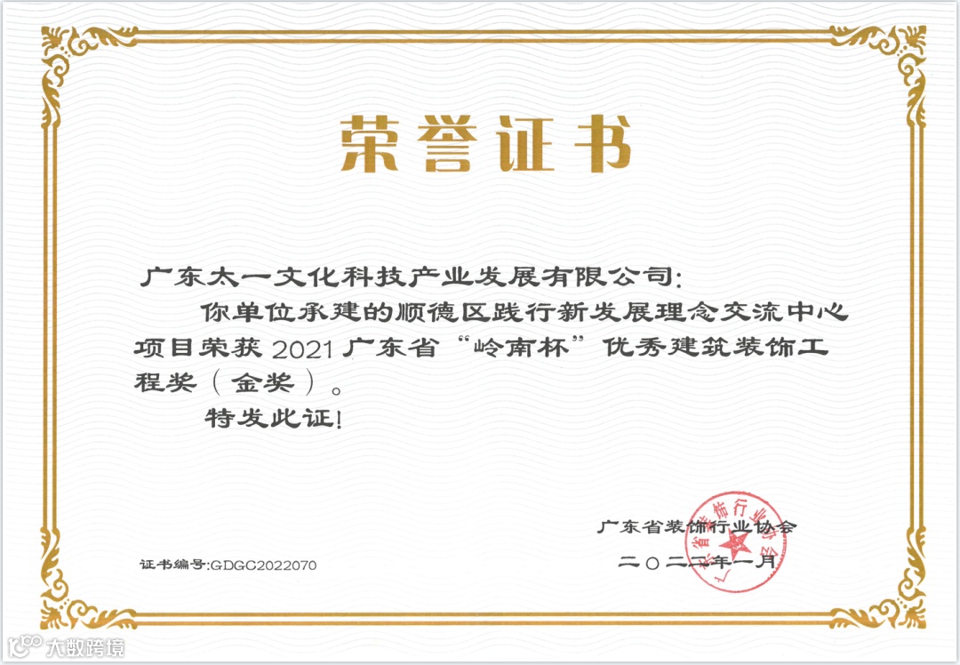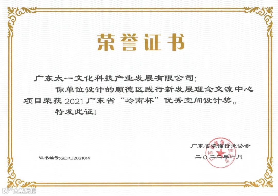 近日,广东省“岭南杯”2021年度优秀空间设计、优秀建筑装饰工程等奖项评选结果出炉。广东太一共有9个项目获得十大奖项,充分体现了我司的专业能力与企业实力。
