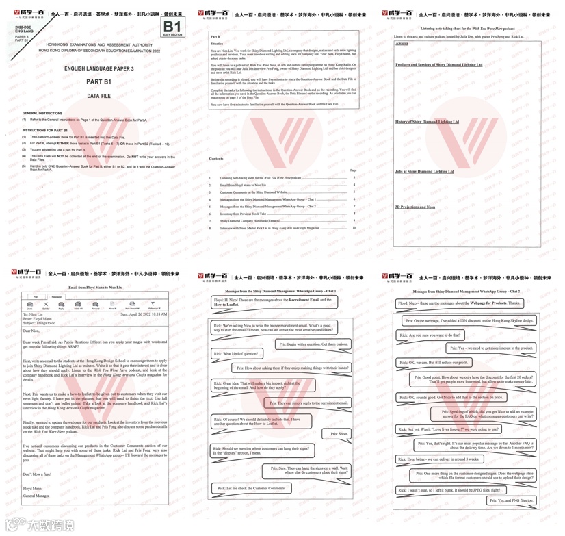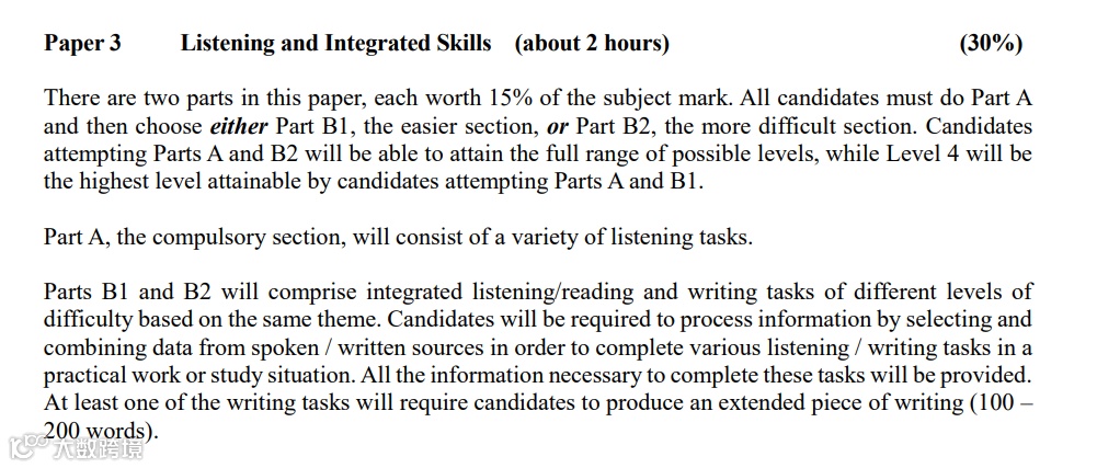 DSE英语分为听说读写4个部分,分别是:卷一阅读(20%)、卷二写作(25%)、卷三聆听(30%)、卷四口语(10%),其中听力(下文我们将都用听力来指代聆听)占比最高,且难度也相当高。