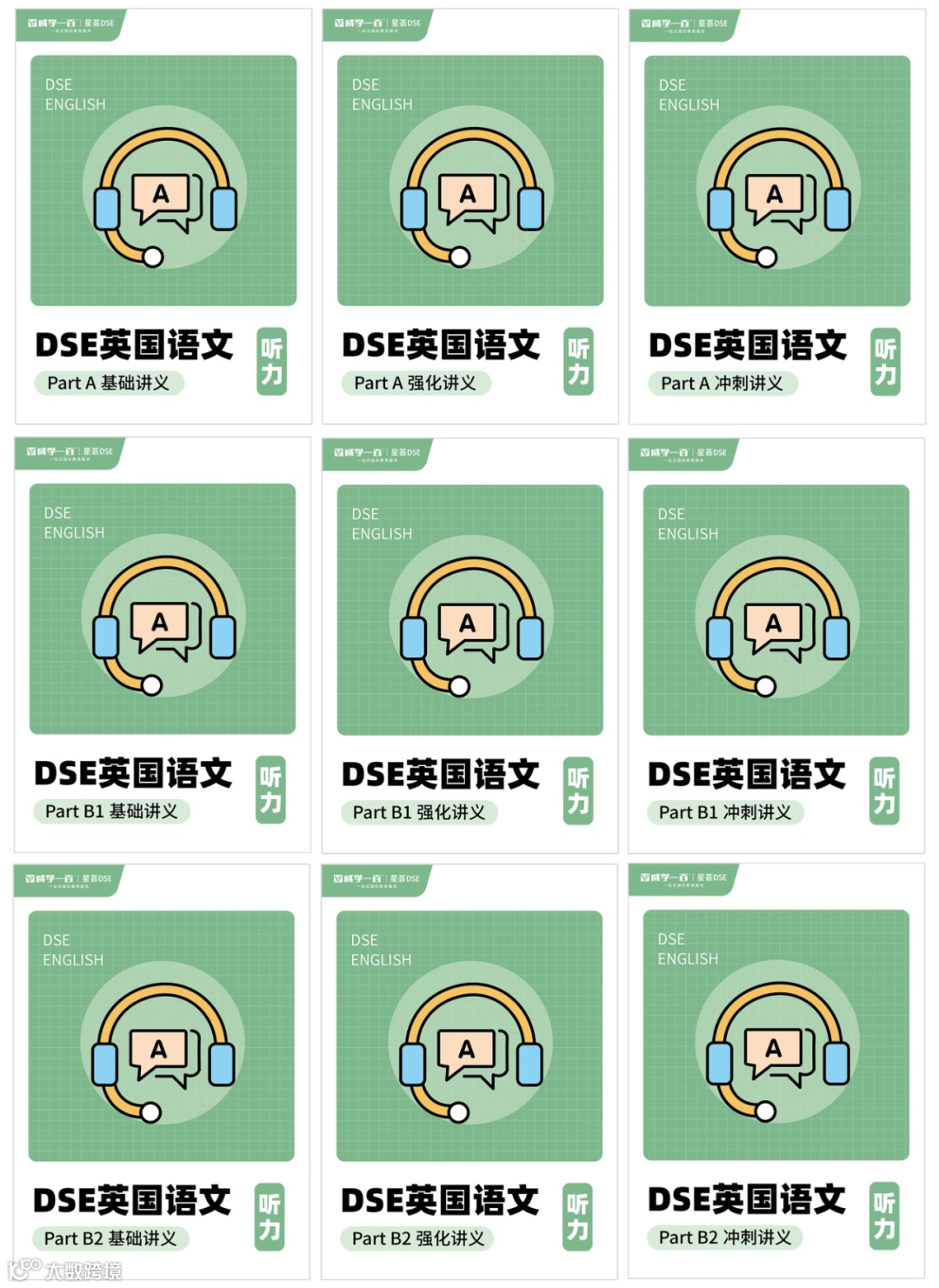 为精准匹配内地学生的听力薄弱点,同时贴合DSE考试的能力要求,我们的教学教研团队倾尽心力,精心研发出一套系列完整、梯度清晰的DSE听力专属教材。针对Part A、Part B1和Part B2三大题型,分别研发出基础、强化、冲刺三个阶段共九本讲义,完美适配不同水平的学员。