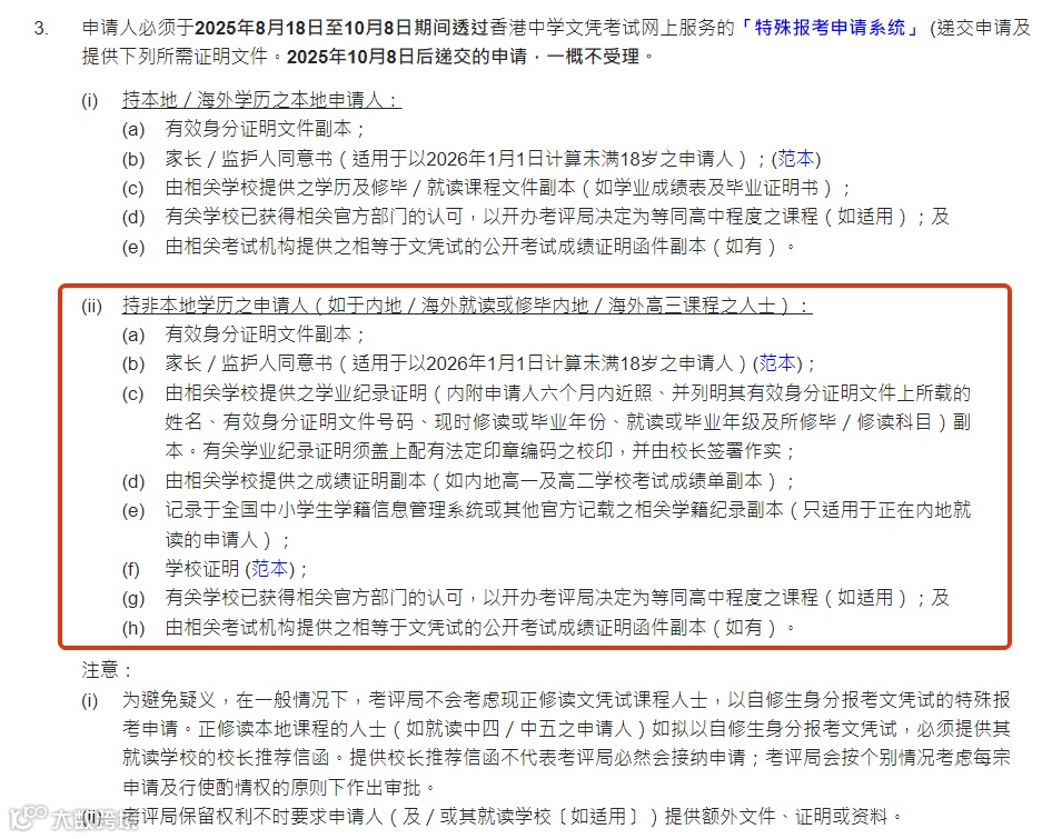 近日,香港考评局正式发布了针对自修生的特殊报考指引,本次特殊报考申请将于2025年8月18日正式开放,报名26年DSE大考的相关考生务必留意。