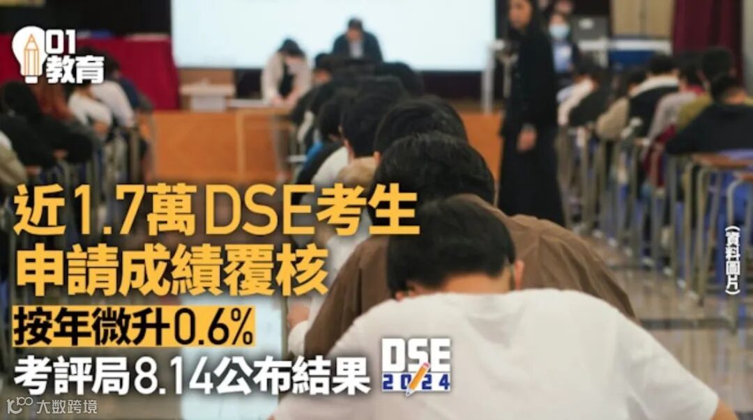 考评局于8月5日发布通知,2024年DSE成绩覆核结果将在8月14日(周三)公布,届时考生可通过手机短信或文凭试网上服务平台获取结果。