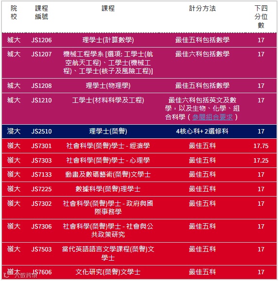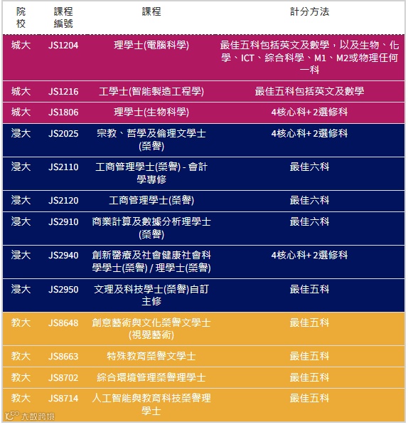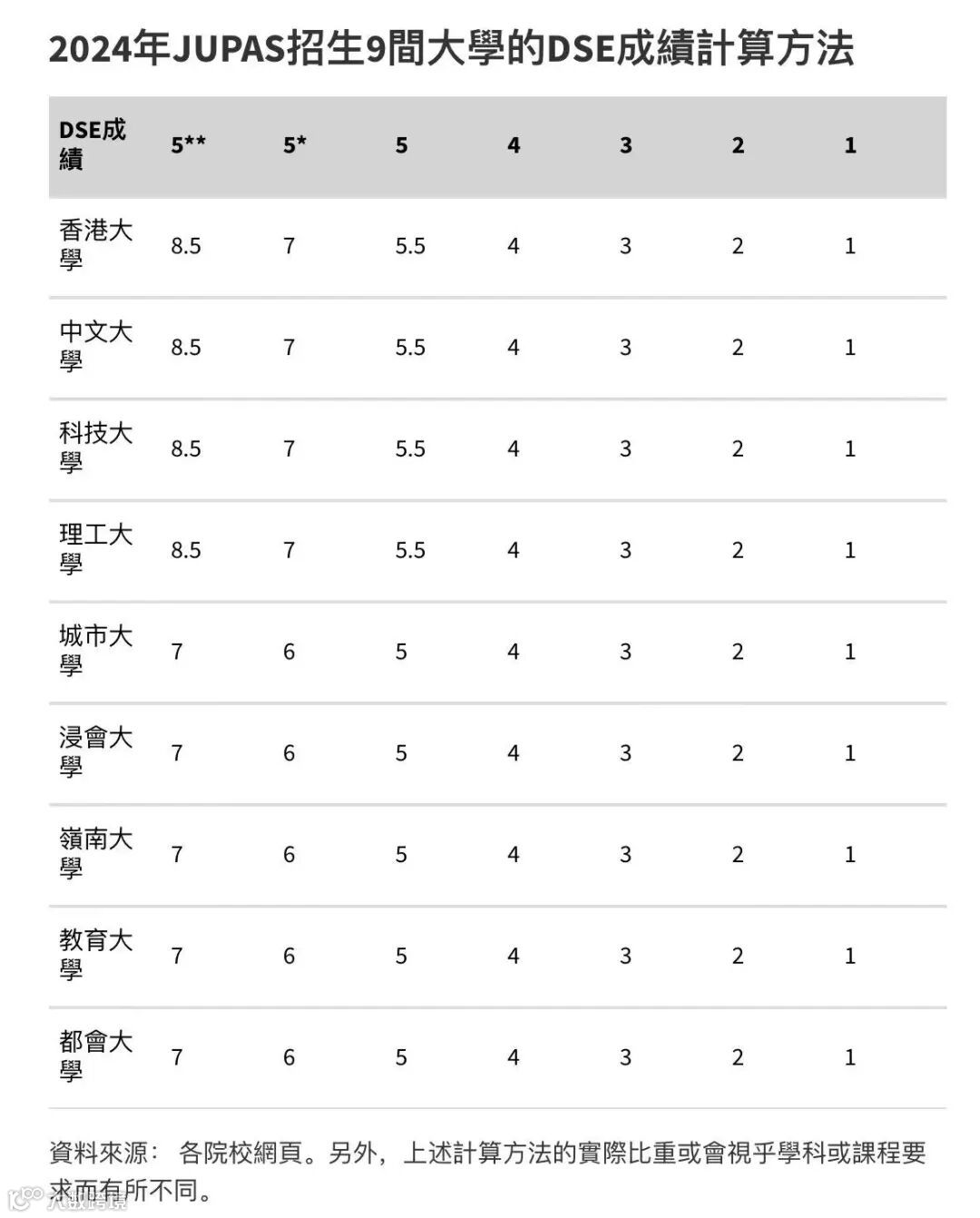 相比之下,城市大学、浸会大学、教育大学等院校在计分时则相对保守。对于「5**」这一成绩,它们仅给予7分的评分。这一差异可能是决定考生能否被录取的关键因素之一,因为不同的计分方法会直接影响到考生的总分排名和录取机会。
