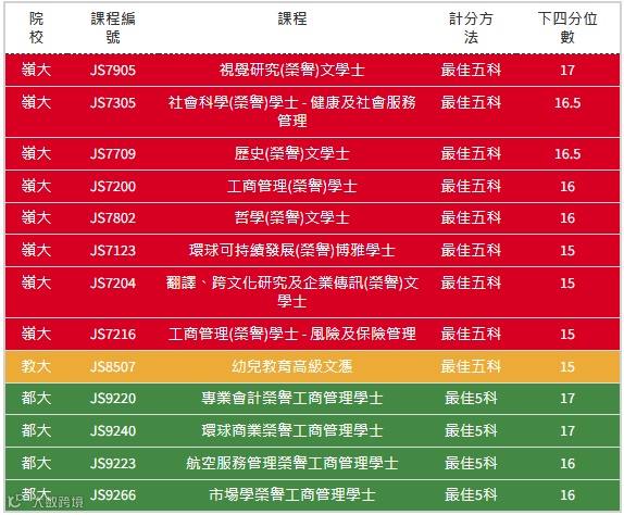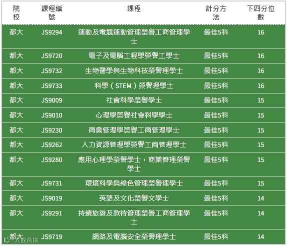 城大、浸大、都大为下四分位数成绩例子的最佳五科成绩