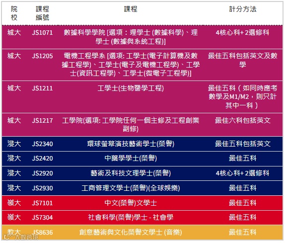 理大参考分数为弹性收生最佳五科最低收生分数(按院校特定比重计分);教大课程为入学平均分