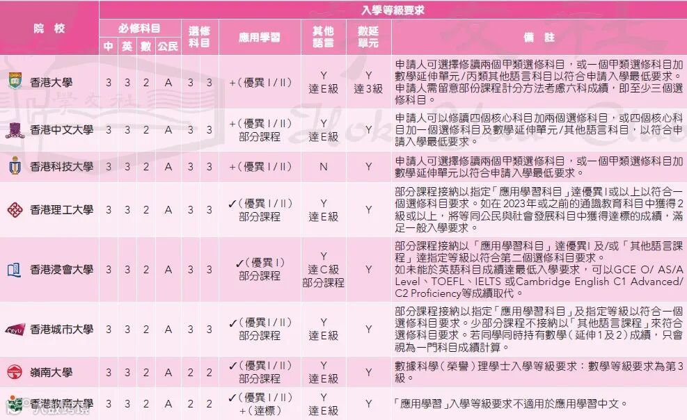 ▲港八大入学等级要求,如有更新请以官网为准