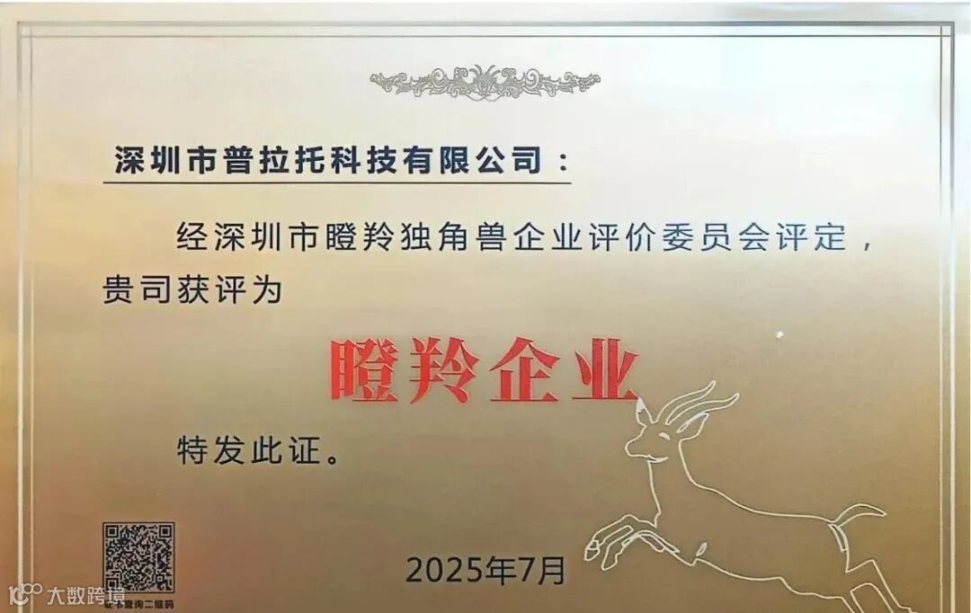 7月,普拉托受邀参加以“新质驱动·未来领航”为主题的2025中国(深圳)独角兽企业大会,并获评2025年度“瞪羚企业”称号。