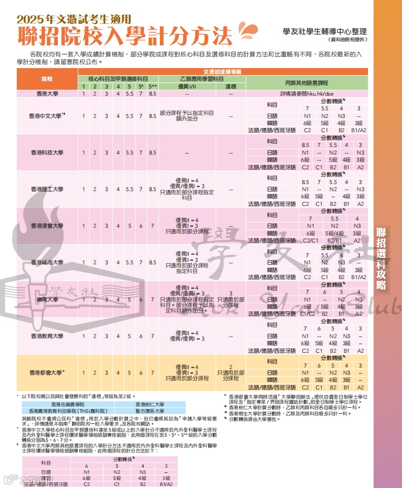 如果通过联招申请港校,计算较为复杂。各大院校对考生的科目要求、DSE计分方式、科目比重有所不同。