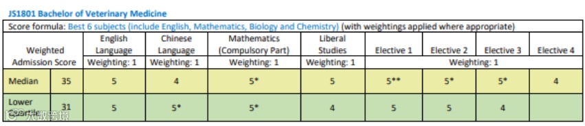 图:23年香港城市大学中兽医专业JS1801联招分数