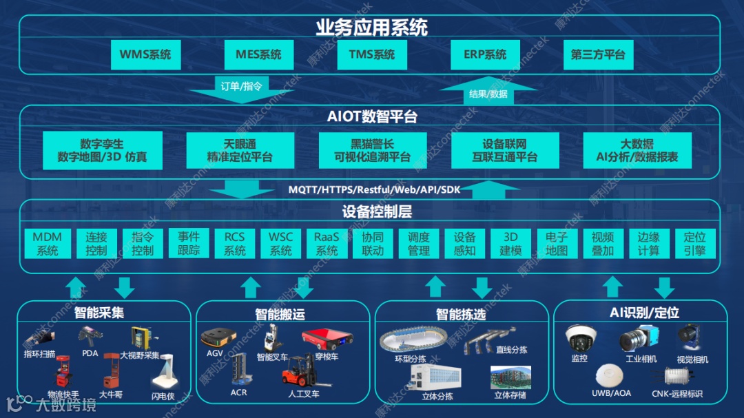 针对于当下智慧物流效率低下、人工成本高、库存混乱、人员管理难、安全事故、质量事故、品类众多、行业标准不统一的行业痛点。康利达物联直击痛点,从客户实际需求出发,基于AIOT技术重塑数智化物流,不断地探索研发、积累沉淀,公司自主研发出AIOT智能产品以及智能装备,并形成5G融合定位解决方案、智能搬运解决方案、“月光骑士”大视野AI视觉采集解决方案、“黑猫警长”全程可视化追溯解决方案、“大牛哥”体积测量系统解决方案、“魔戒”可视化智能指环解决方案以及RFID智能应用解决方案,目前已经在智慧物流、智能制造、新零售等行业规模使用。