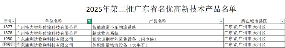 11月,广东省高新技术企业协会公布了2025年第二批广东省名优高新技术产品名单,祝贺康利达、特力智能两家谷友企业入选。