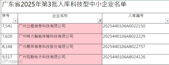 11月,广东省科学技术厅发布了关于2025年第三批入库科技型中小企业公告,园区谷友企业立趣科技、特力智能、晟烨股份、视翰电子凭借突出的技术创新能力,荣获广东省科技型中小企业认定。