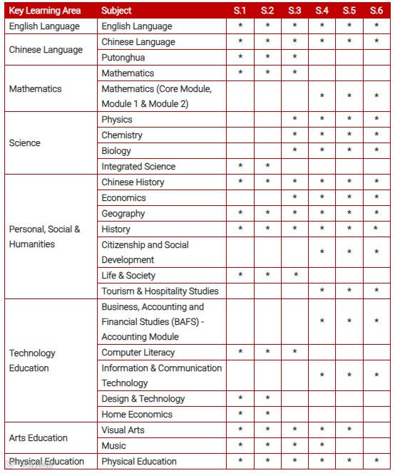 初中一至初中三级实施全面而均衡的基础教育。中三级设有不同的课程,让学生有更佳的准备与高中课程接轨。为配合高中课程的实施,学校向学生提供多个选修科目,核心课程的数学科,同时开设及两组延伸部分供学生修读。不论选修文、理或商科,学生皆可因应个人需要而灵活选择不同的学科组合。
