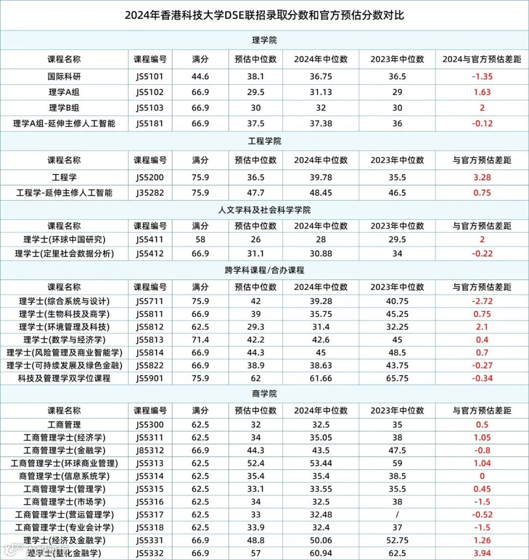 接下来,一起看看港科大2024年DSE分数线和预估分数的对比。