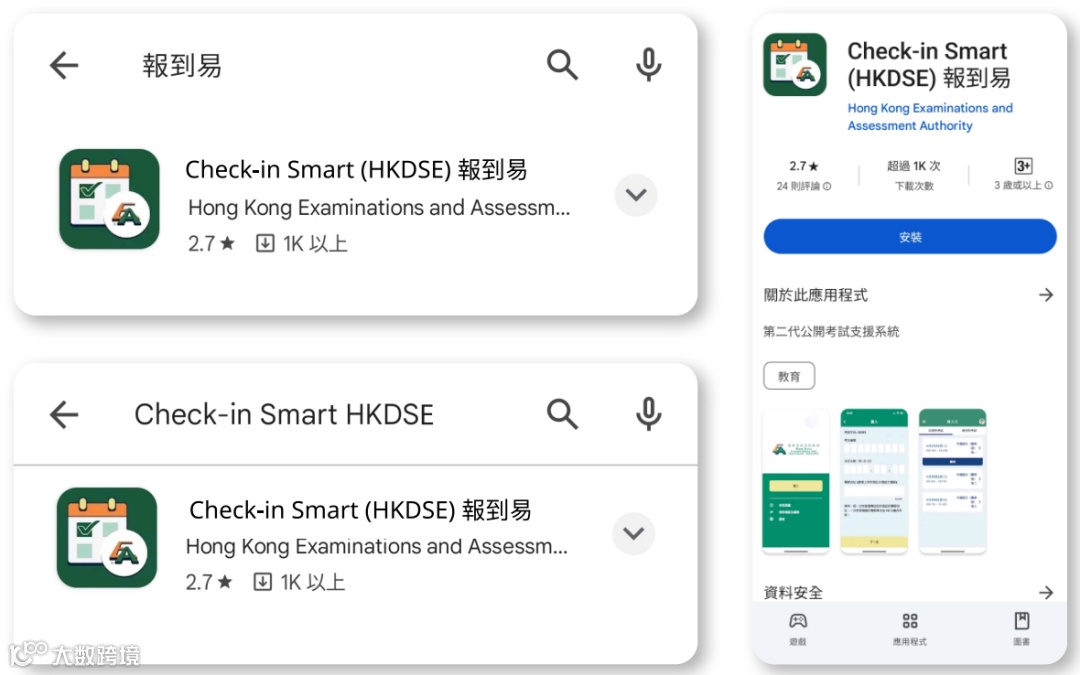 考生们可在 App Store 或 Google Play 应用程序商店内搜索报到易按指示下载及安装。