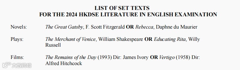 Part 1 (section A /B/C )中所有考察的文本都与2023-2024 HKDSE的文学大纲必读书目一致(见下图),只要能把这些必读书目都熟悉,考到的分析难度都不大。