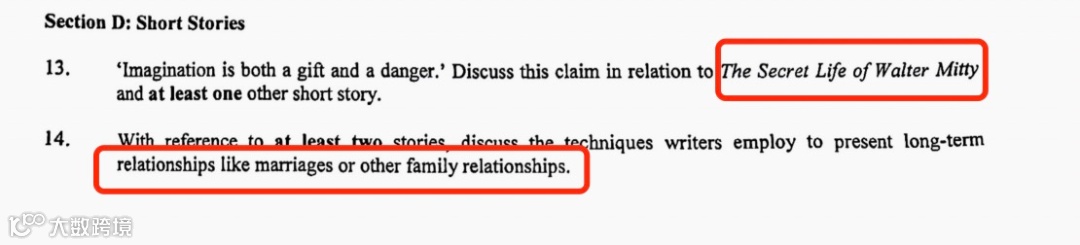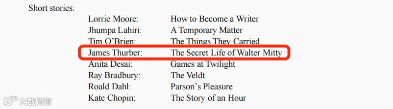 Part 1 (section D-二选一)本次考题之一有着重考察到The Secret Life of Walter Mitty (见下图1),单拎出来与大纲中(图2)的任意一个short story 对比 。