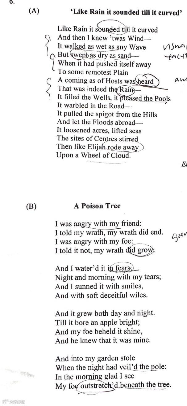 在section C的环节就是unseen poetry,这个环节就是整个科目的拉分板块,纯粹考的是对于文本分析的功底。本次的两篇unseen poetry 分别是: