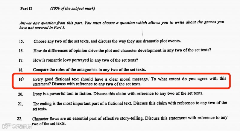 而本次考试,我们的老师又又又精准预测了考点了!比如:从大纲的选文中选中主题与“婚姻或者是家庭关系主题”的短文进行技巧分析;围绕plot events (戏剧进程)、character development(角色发展)、技巧批判分析等!为威学的老师们神准预测点赞!往期考情回顾⬇⬇:
