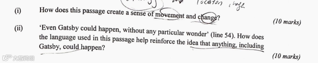四类文本主要考察的还是围绕每个书目中节选章节的内容,进行人物目的、语言反映情感、以及语义目的等等。本次的section A选文虽然是考生较为熟悉的文本,但在出题设计上更讲究对于文本赏析以及分析的深层能力,比如(见下图):