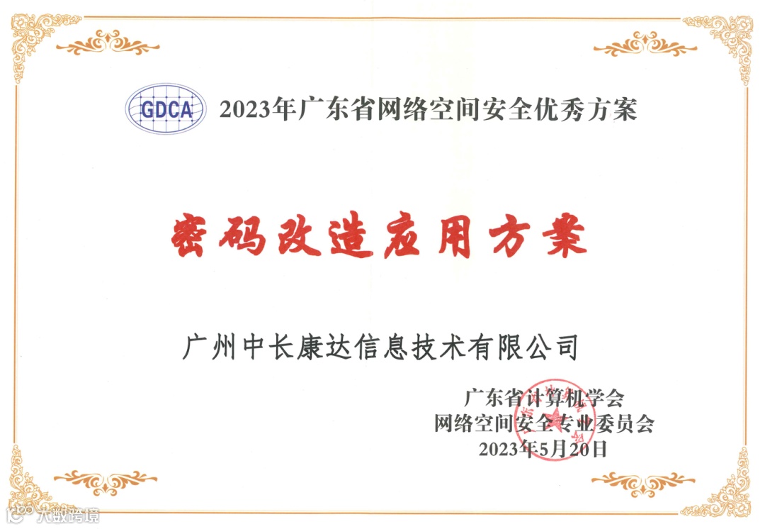 中长康达在2022年广东软件风云榜收获两项殊荣,密码改造应用方案入选2023年广东省网络空间安全优秀方案