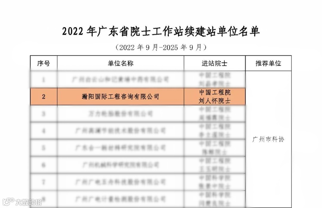 广东省科协根据《广东省院士工作站管理办法》相关规定,对截至2022年8月建站期满的广东省院士工作站开展评估工作。瀚阳国际院士工作站顺利通过本次评审,成为21家继续建立“广东省院士工作站”的单位之一。