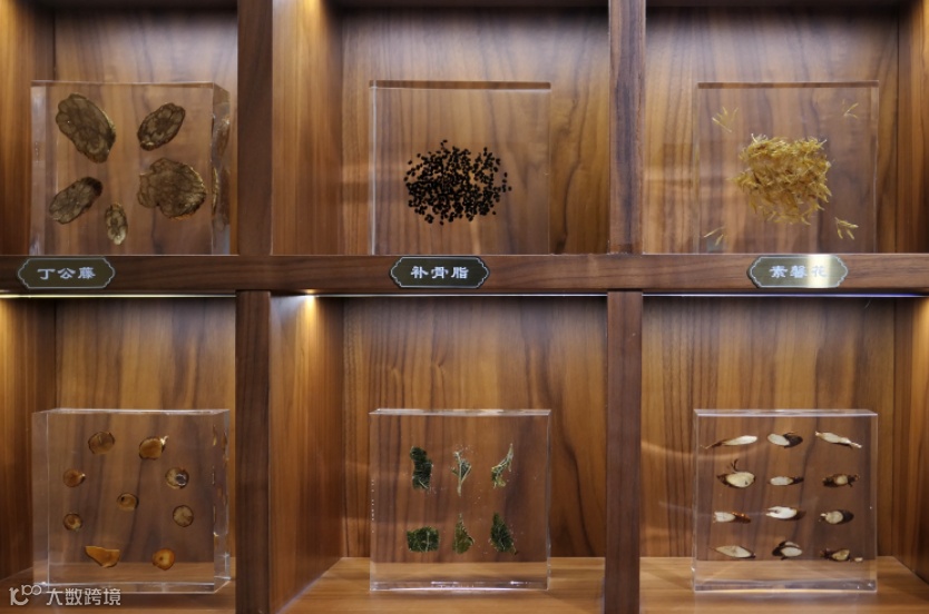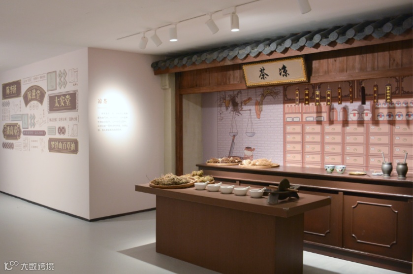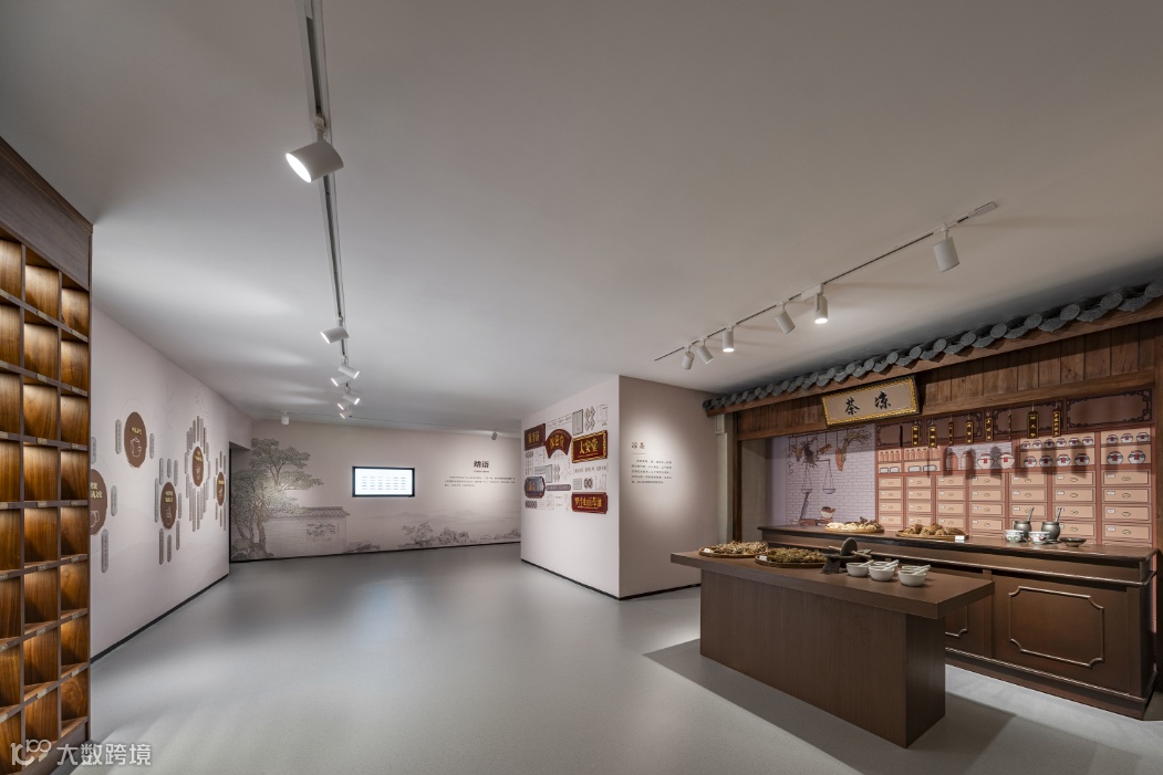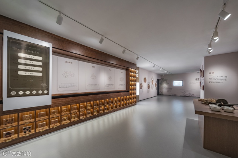 设计打造了广东道地南药标本墙,形成风格鲜明又相对独立的展陈空间,结合多媒体设备,虚实结合展示岭南传统中医药文化;展示台上设置药碾、药臼等实物道具,观众可以动手尝试舂药、研磨药材,体验传统中药材的炮制过程。