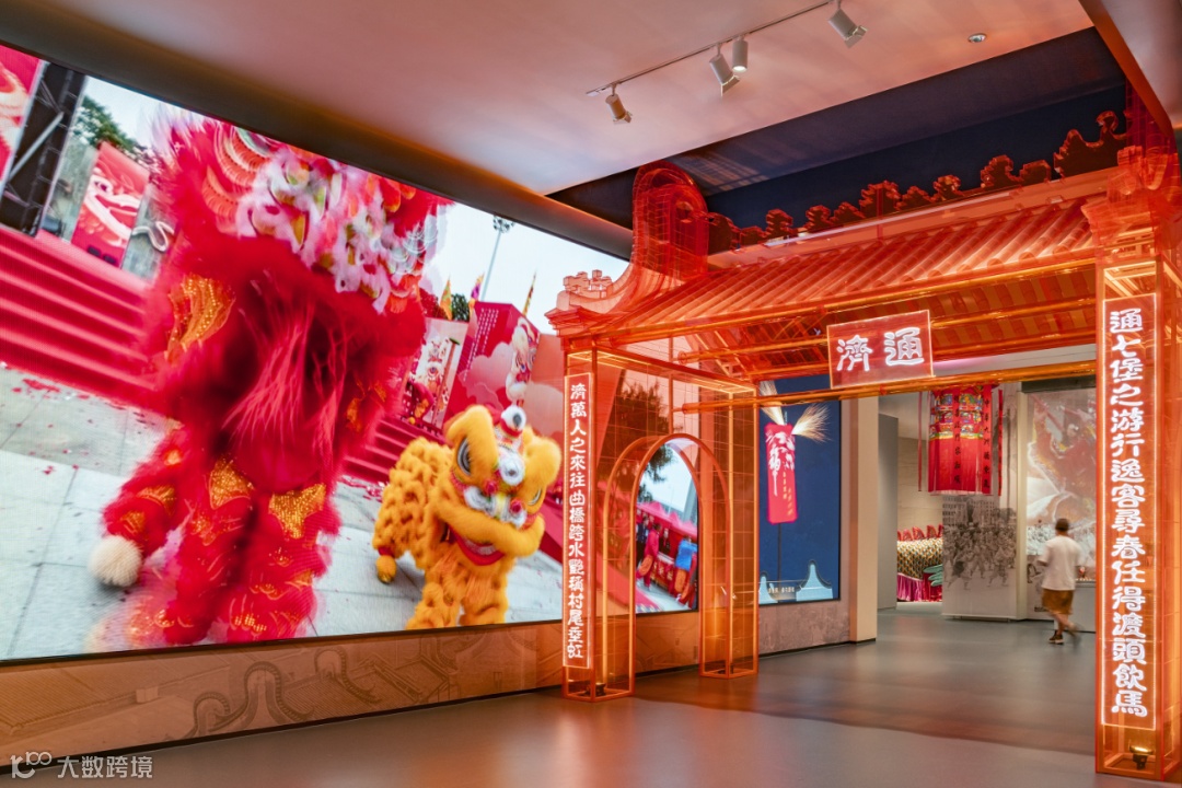 一年复始,万象更新。搭建春节“行大运”的沉浸式展陈空间,以数字化多媒体结合通济桥牌坊等艺术装置共同营造“行”的多样场景,将新年的祈盼融入各种仪式动和热闹氛围之中。