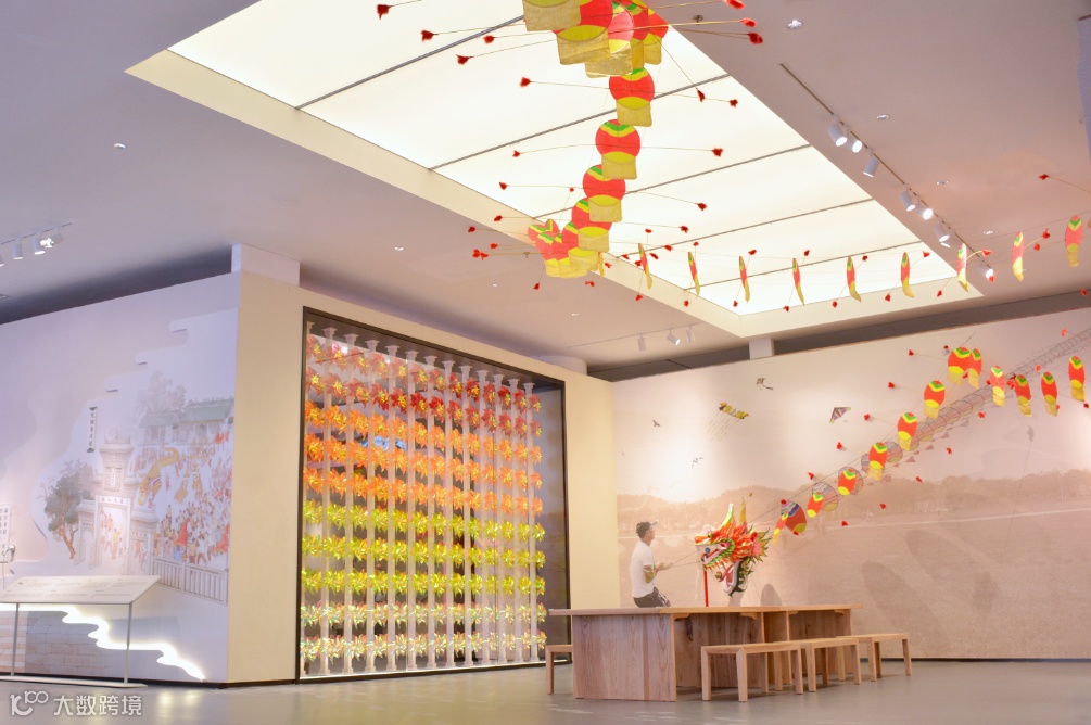 同时也结合非遗展品展示端午期间纸鸢挂长空、乡民竞放风筝的盛况,形成空间的打卡亮点。