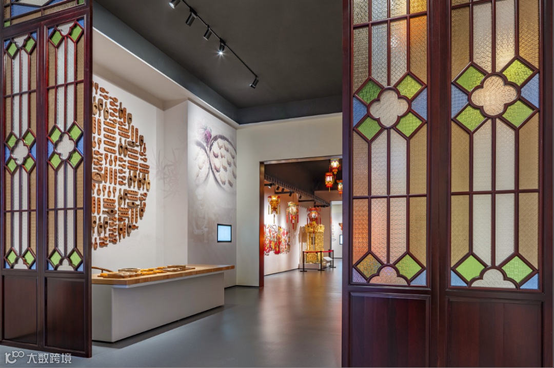 采用现代展陈艺术形式,打造“饼印墙”,同时设置月饼传统制作技艺互动展示台,营造广东月饼的特色展示空间。构建岭南地区热闹的“秋色”场景,观众在此入情入境,沉浸式感受岭南团圆氛围。