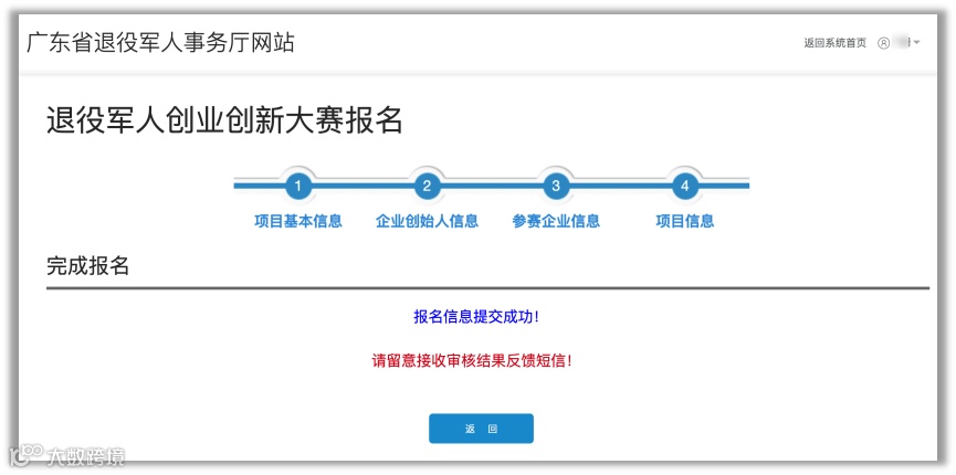 2.广东省退役军人创业创新大赛报名信息填写完成,即可正式提交。点击页面下方“确认提交”按钮,如下图: