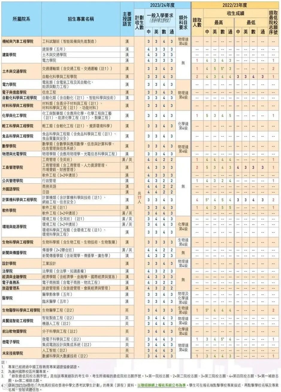 23/24年度华南理工大学计划招收400人,相关选修科目成绩合格(即达第2级)即可申请报读,详情点击下图查看。