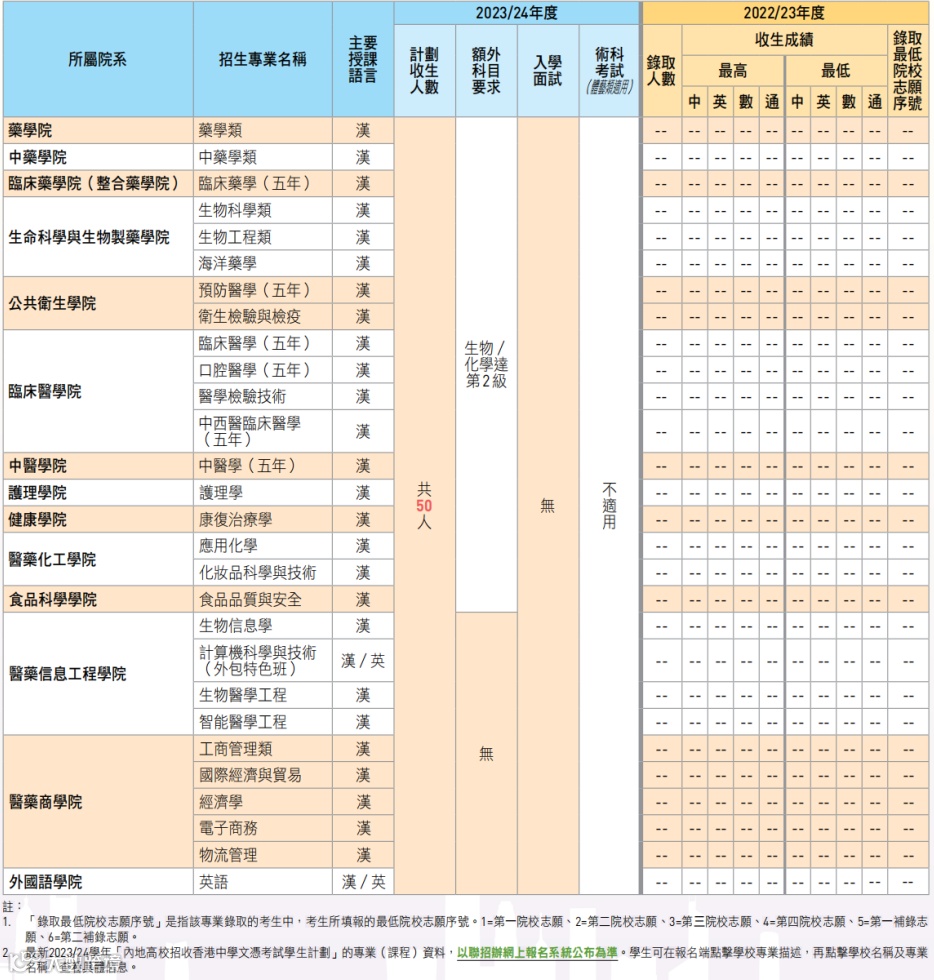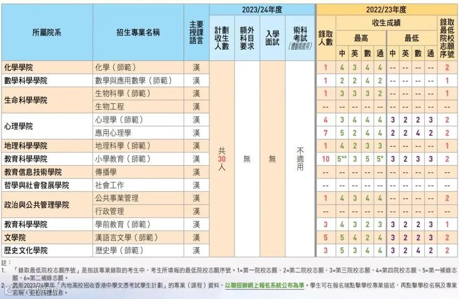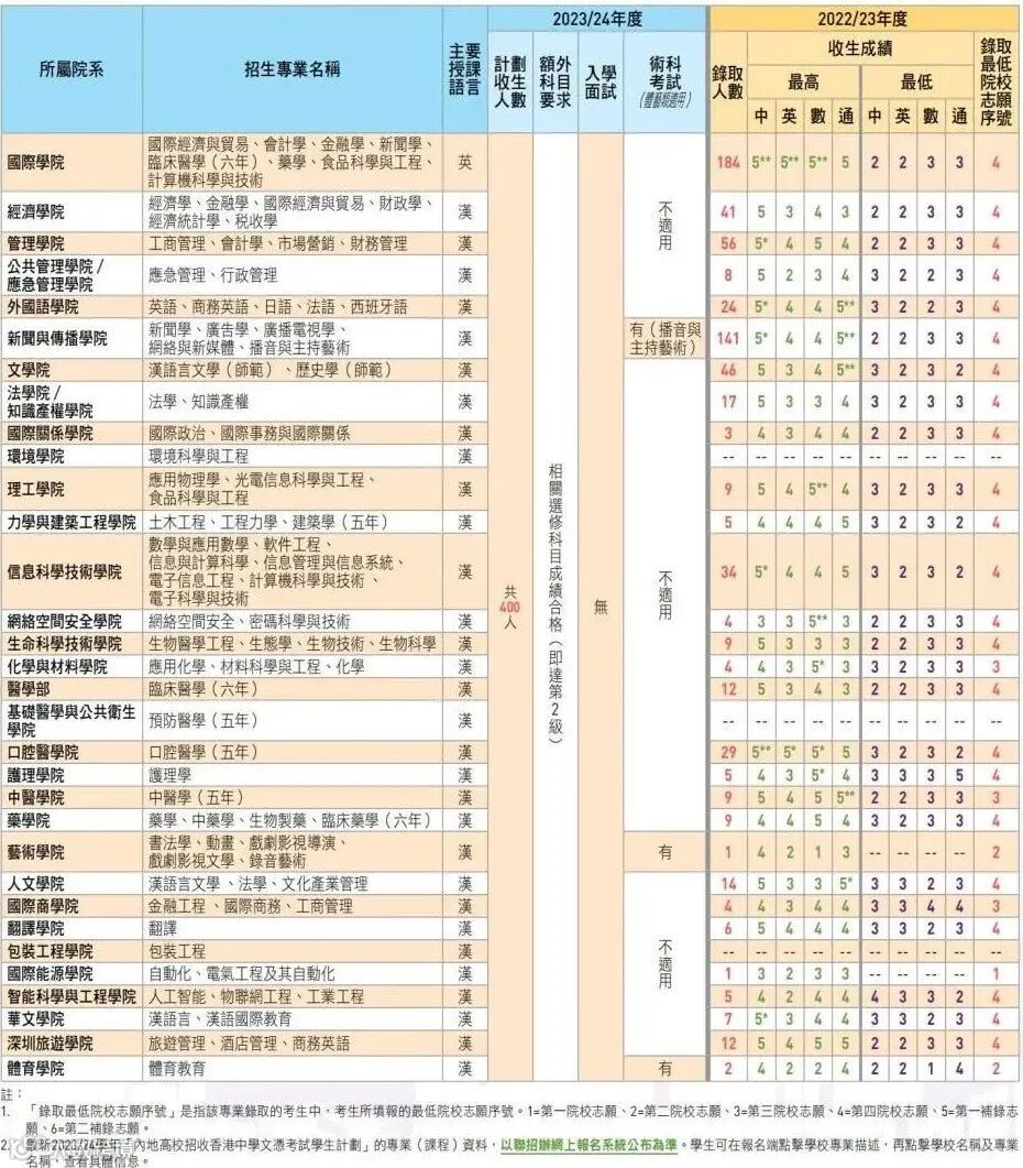 去年广州中医药大学通过内地高校招收DSE考生计划共录取78人,其中最高录取成绩为「5*454」最低录取成绩为「3322」。23/24年度华南师范大学计划招收70人,