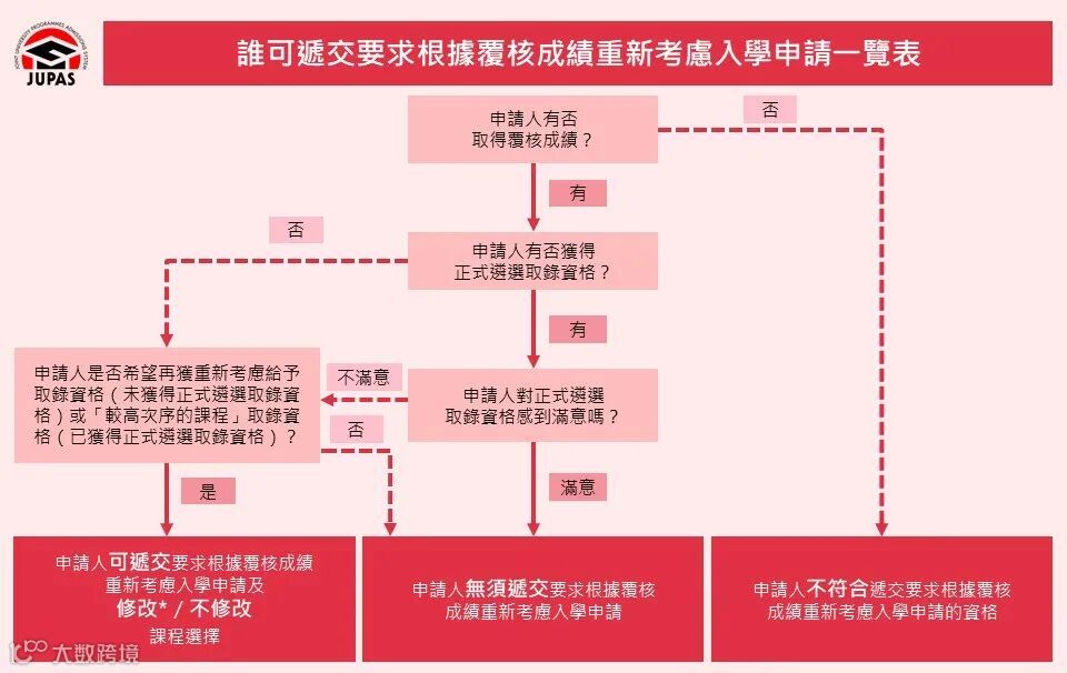 成绩获提升的考生可联络联招办,要求各院校按复核后的成绩重新考虑其入学申请,各大专院校会务求在此阶段为成绩获得提升的考生公平处理其入学申请。