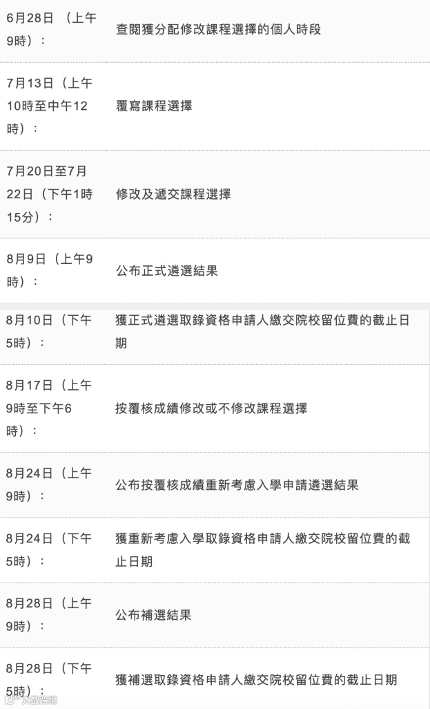 JUPAS放榜、改选及补选时间表