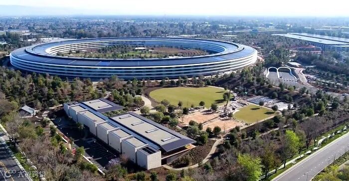 苹果总部Apple Park也是一个掩映于植被中的绿色园区,引入309 种植物,共有 7000 株树木覆盖在正中的中央公园上,植被覆盖率达到80%。苹果设计总监艾维说,建筑的价值,不在于对它的投入,而在于它带来的成果。