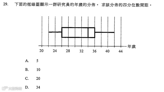 如果知道相关的知识点,这个题目并不困难,Q3-Q1=36-26即可得到。但是对于原来准备高考的考生来说,需要多学习一些知识了。
