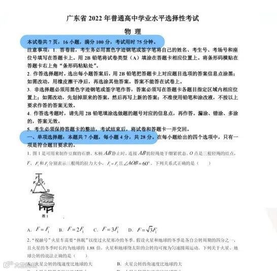 高考(广东)题型为:单选题(28分)、多选题(18分)、非选择题(58分,包括必考题和选考题,选考题一般对应选修3-3或者选修3-4,选考题只需2选一作答即可)考试时长75分钟。